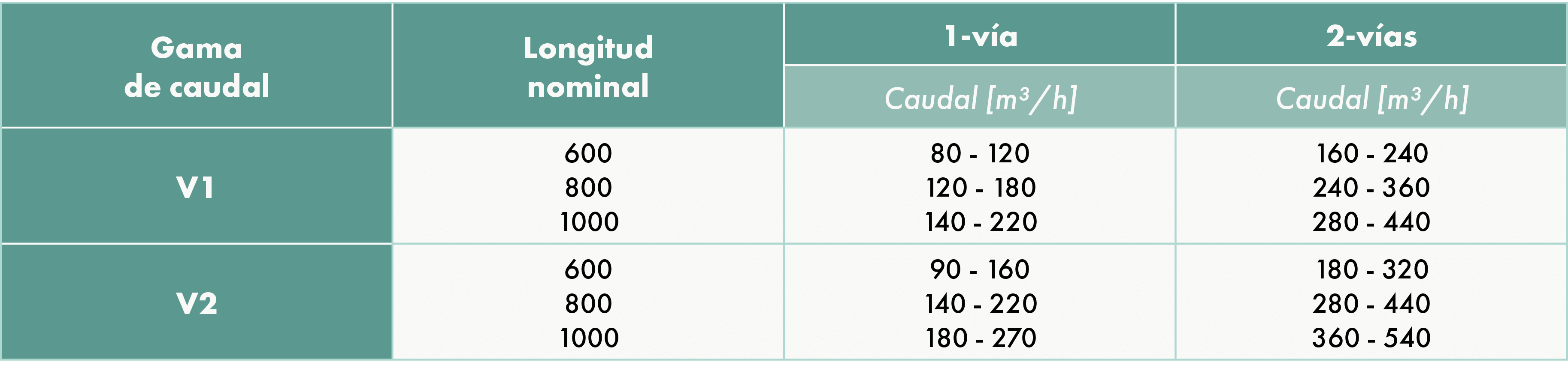 - Caudales indicativos de 80 a 540 m³/h (tablas de selección).