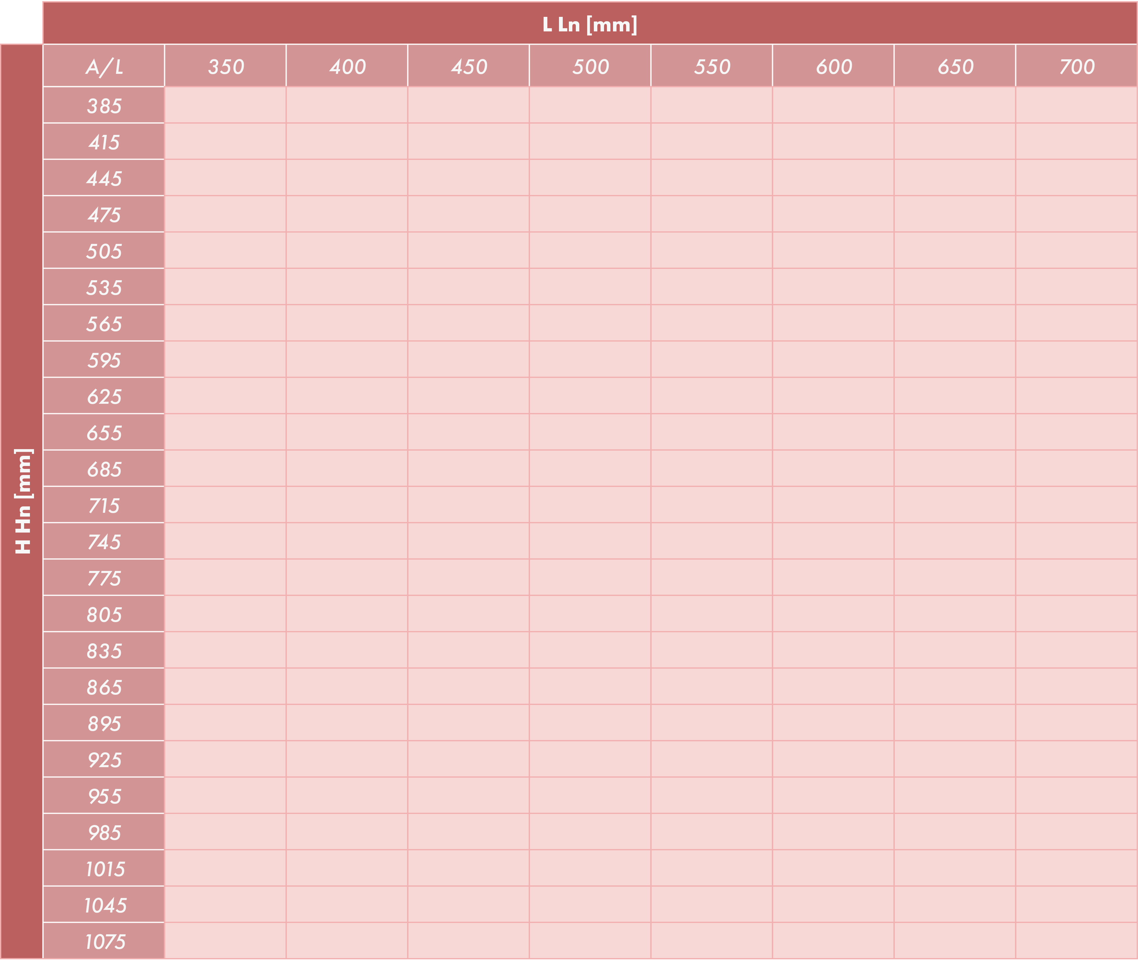 (8) - Dimensiones exteriores: (Ln + 54) x (Hn + 54)