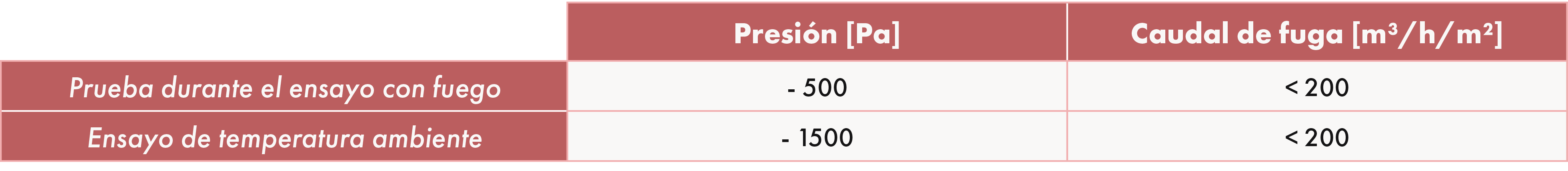 - Aplicación de un material con reacción al fuego de clase M1 (no inflamable), con un peso máximo (Kg), para cada una de las dimensiones de registro según la siguiente tabla.
