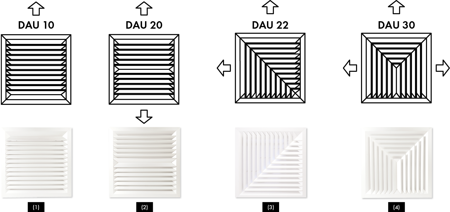 difusores de techo cuadrado 1, 2 y 3 direcciones en aluminio