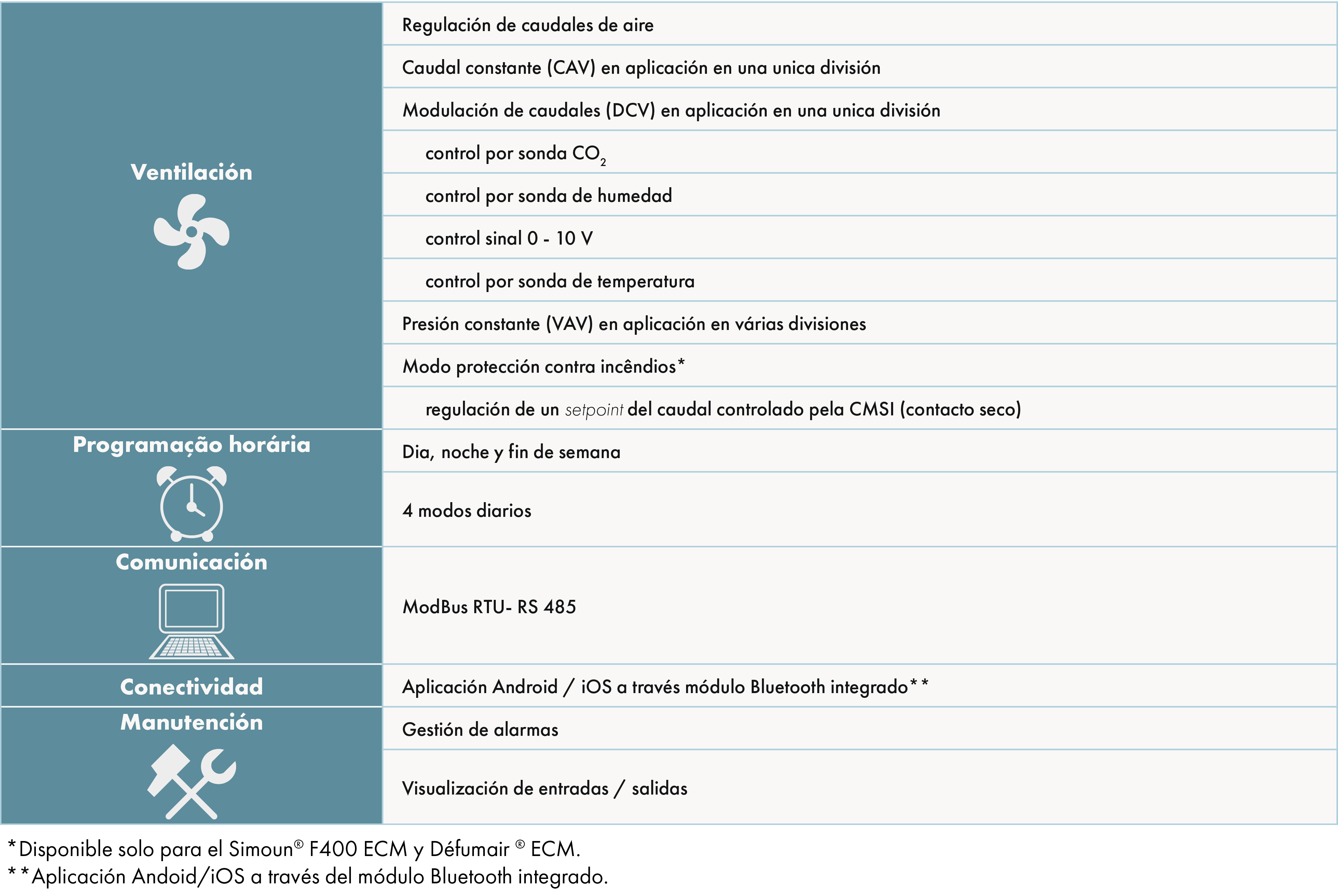 - Motorización: EC monofásica en los modelos 2000 y 4000 y EC trifásica en los modelos 2000 a 18000.