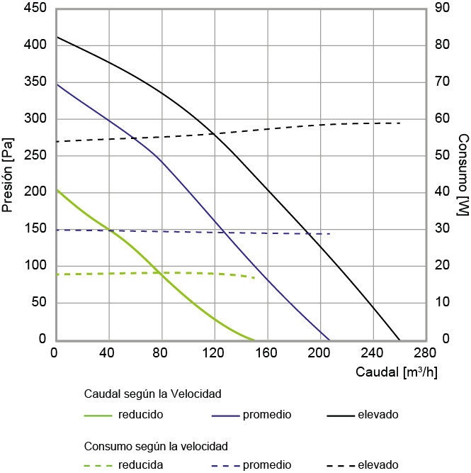 - UVR (unidades de ventilación residencial) del tipo de doble flujo, equipadas con un motor de corriente alterna de 3 velocidades.