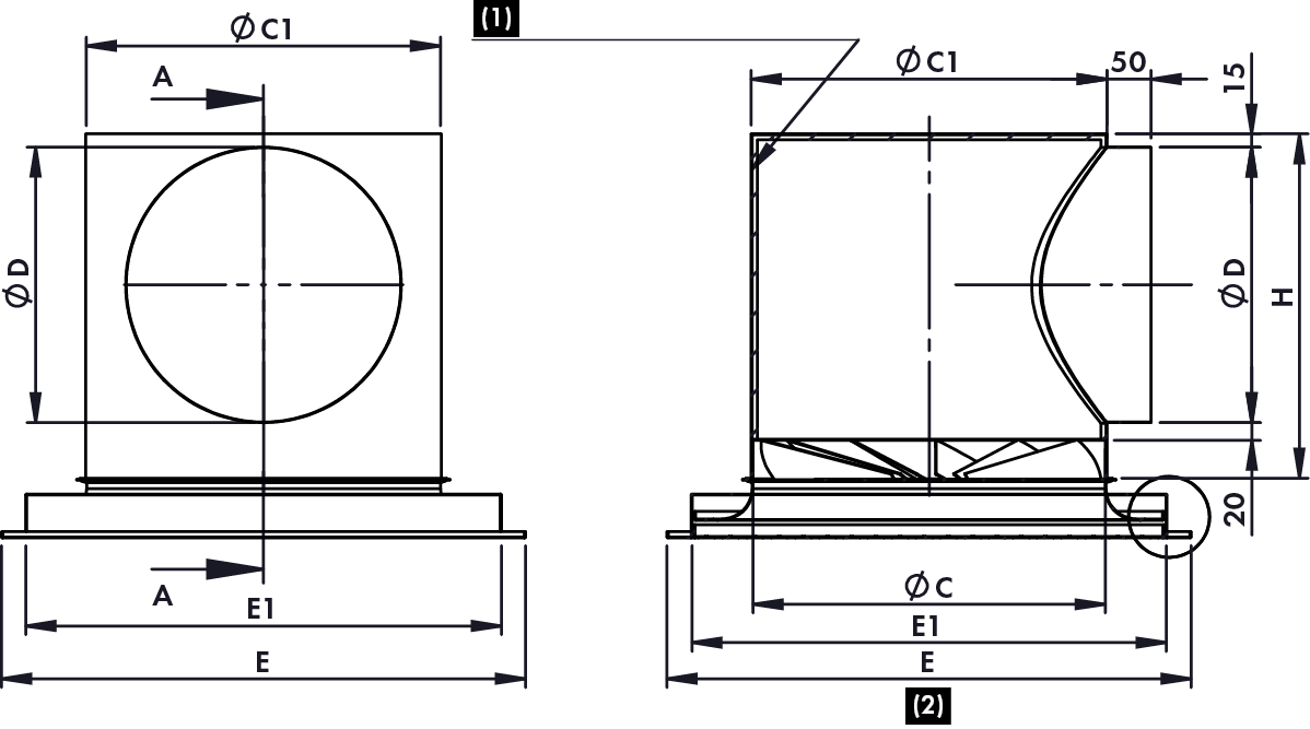 - Plenum cilíndrico con aislamiento interno de acero galvanizado.