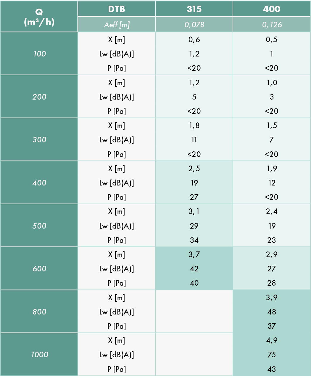 - Caudales indicativos de 100 a 1000 m³/h (tabla de selección).