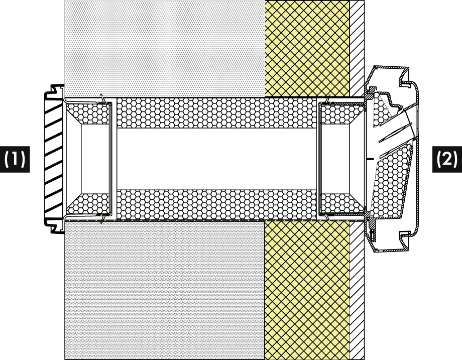 - En la fachada (exterior), una vez terminada la conductos, atornillar la junta de rejilla GAP 100 o 125 y colocar rejilla en la junta.