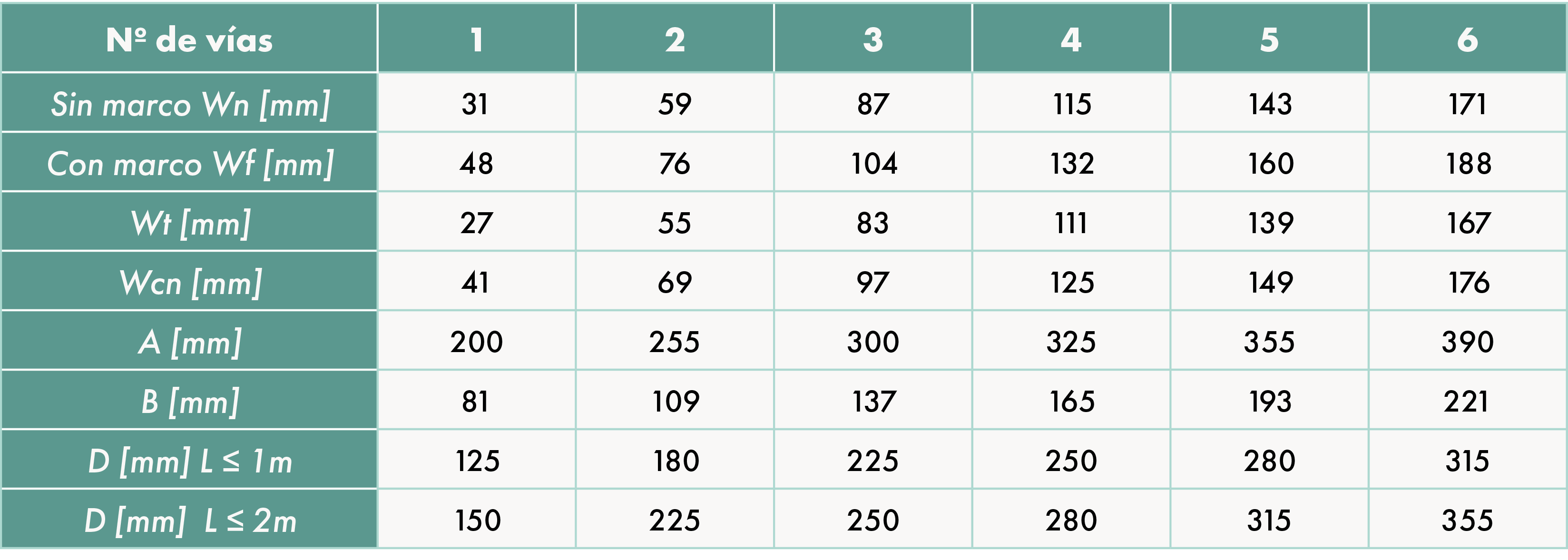 - Otras dimensiones (longitud).