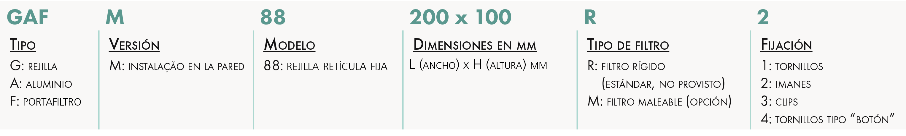 Opción: filtro sintético maleable, suministrado con la rejilla.