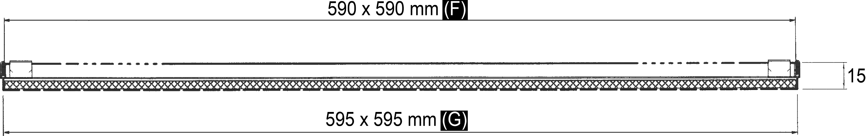 - Dimensiones límite de fabricación: 595 x 595 mm.
