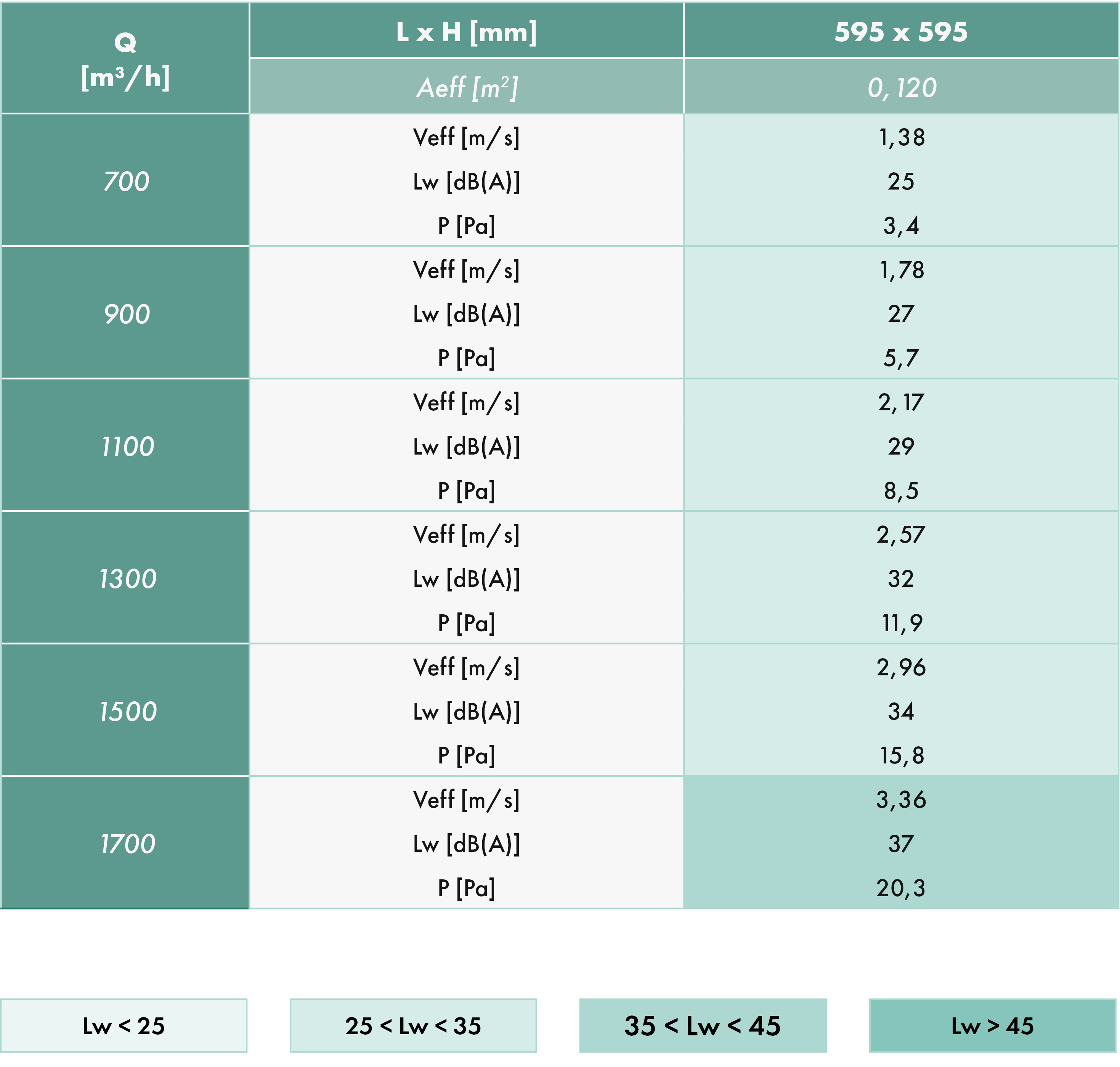 Lw: potencia acústica [dB(A)]; P: pérdida de carga [Pa].