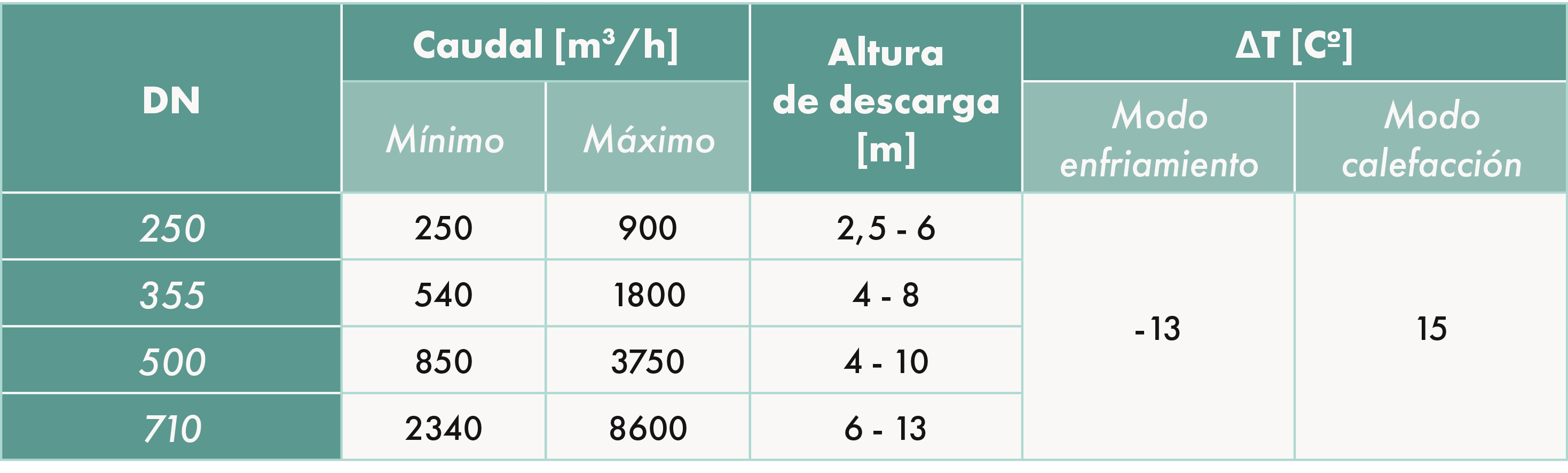 - ΔT: -13º C para refrigeración y 15º C para calefacción.