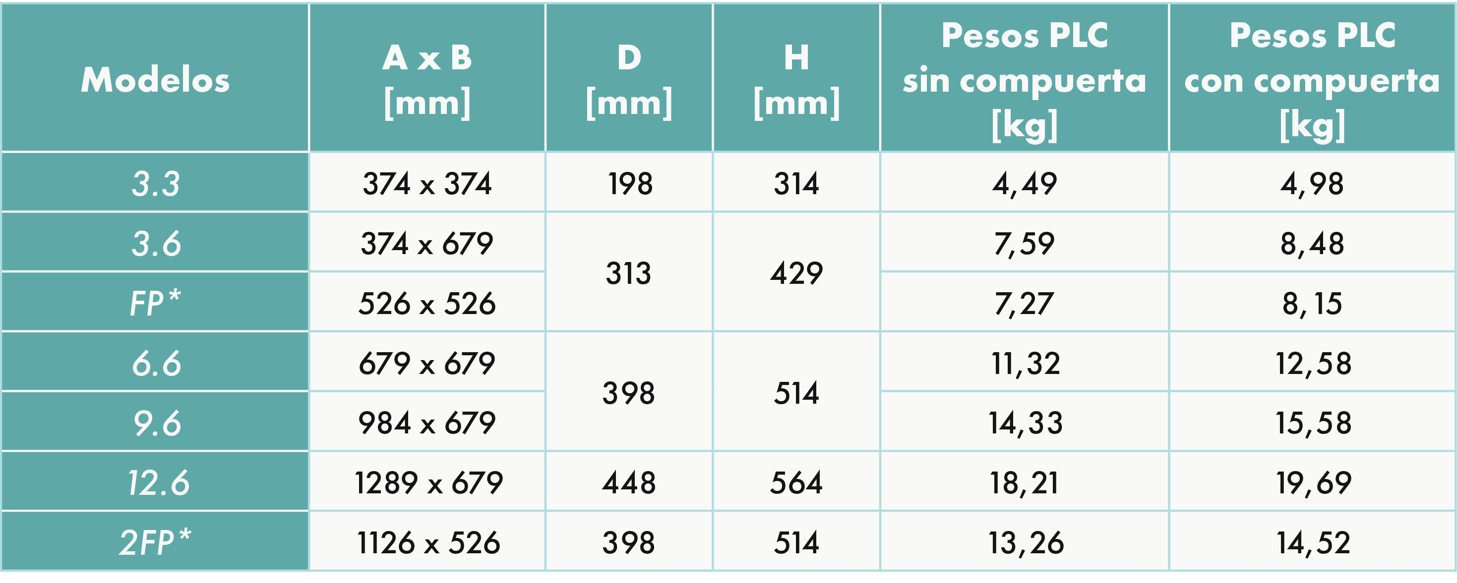 - Modelos para falso techo especial F.P. (placa única) y 2. F.P. (placa doble).
