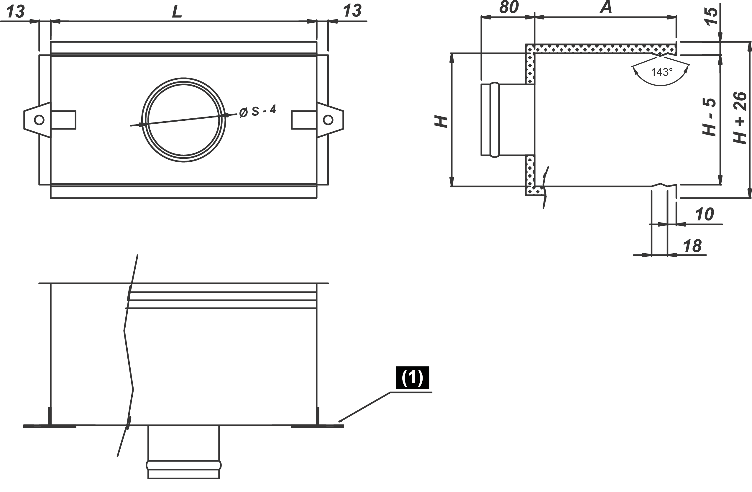 Plenum con conexión lateral en chapa de acero galvanizado, con o sin aislamiento