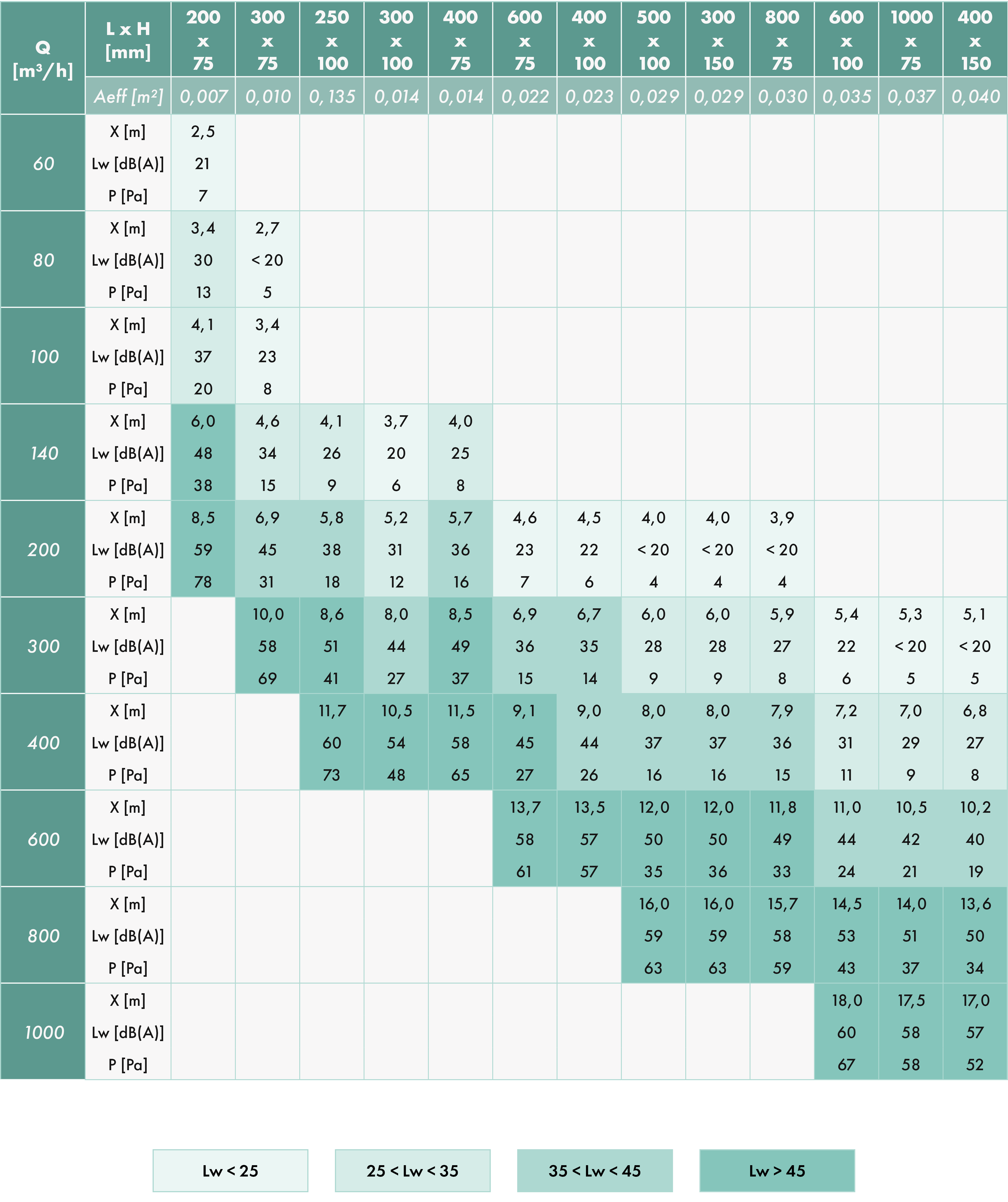 La rejilla con deflexión trasera como opción permite modificar el alcance y la forma del flujo de aire en función de las necesidades de la instalación.