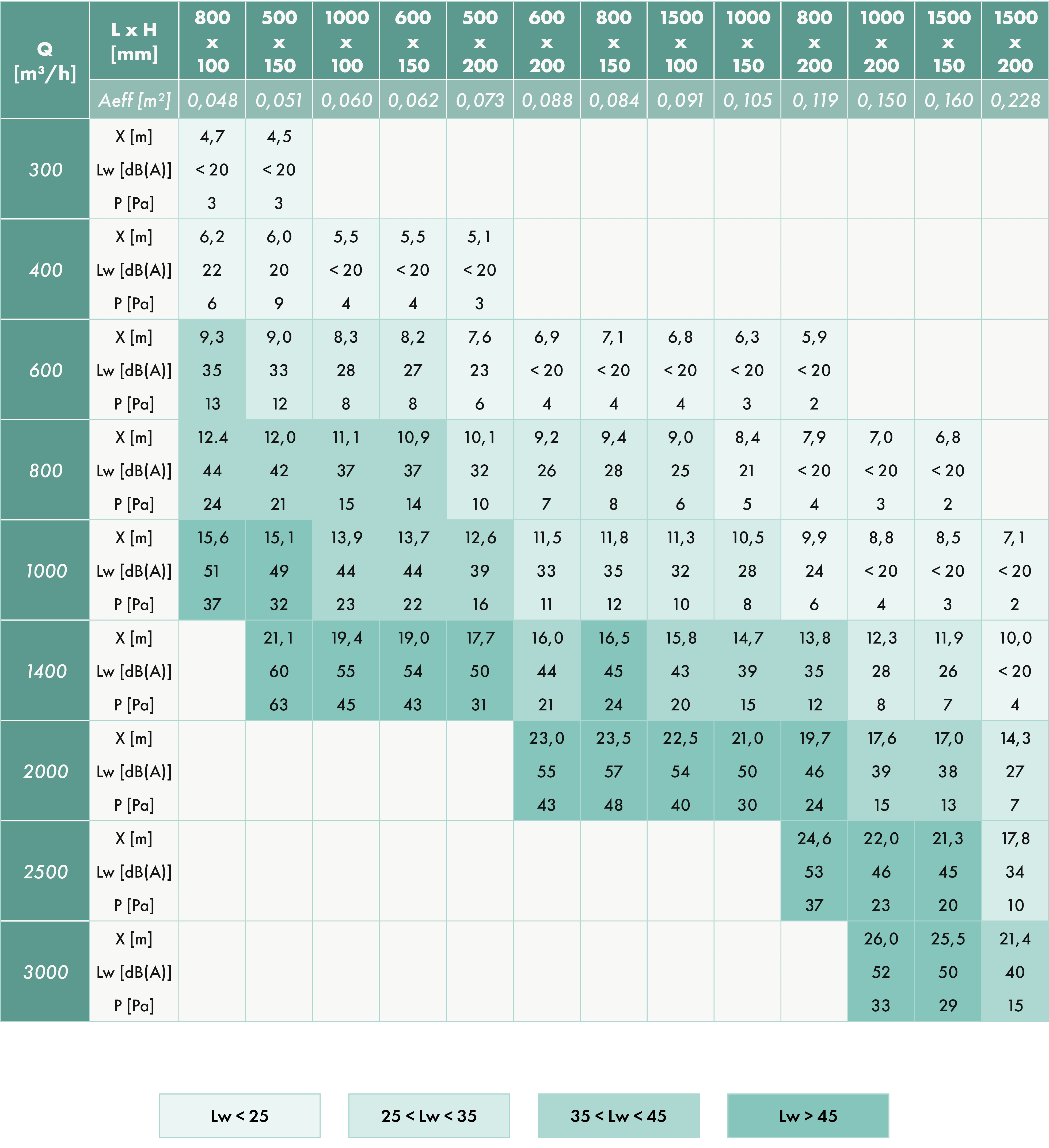 Lw: potencia acústica sin atenuación del emplazamiento [dB(A)]; P: pérdida de carga [Pa].