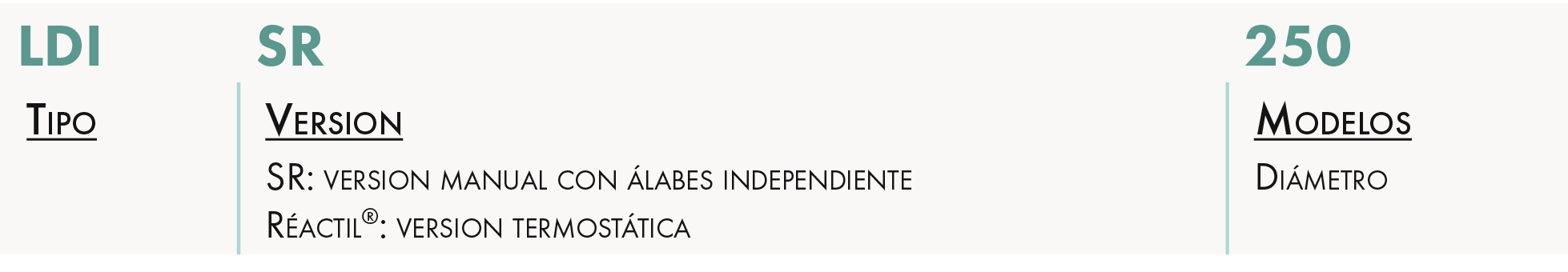 - 8 tamaños disponibles para LDI-SR (ajuste manual) y 7 para LDI Réactil® (control termostático).
