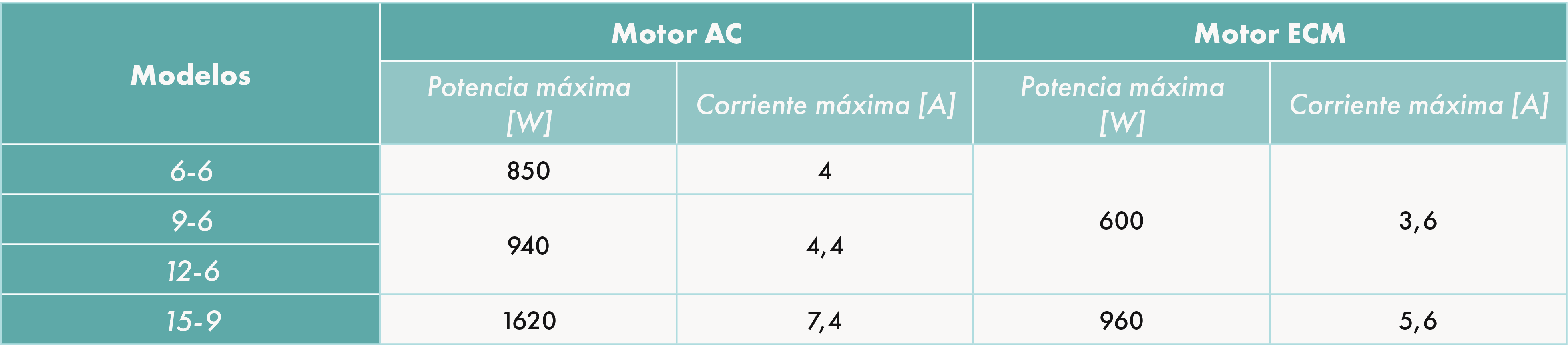 - 4 modelos: 6-6, 9-6, 12-6 y 15-9