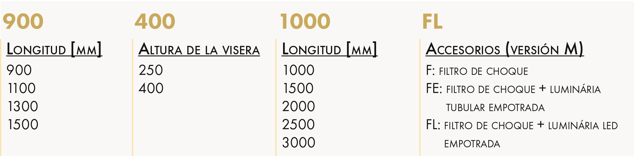 - Longitud de 1000 a 3000 mm (módulos monobloque).