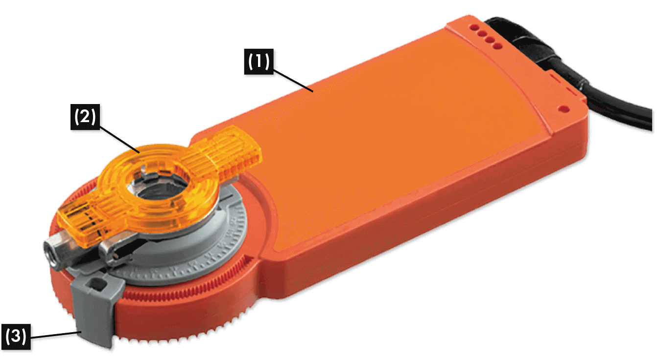 - Coloque los limitadores de flujo en las posiciones correspondientes a los caudales previstos para V1 y V2. Para el valor de V1, el limitador se colocará más a la derecha de la rotación del actuador, y para el valor de V2, el otro limitador se instalará más a la izquierda de la rotación del actuador.
