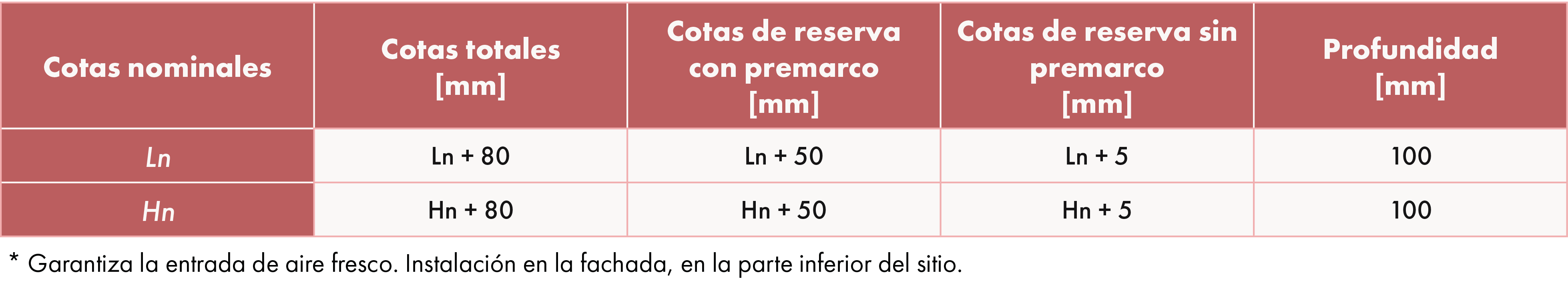 Será necesario prever la instalación de una estructura de revestimiento para la parte trasera (ya que la rejilla superará el grosor de la pared) para permitir la instalación de una rejilla protectora.