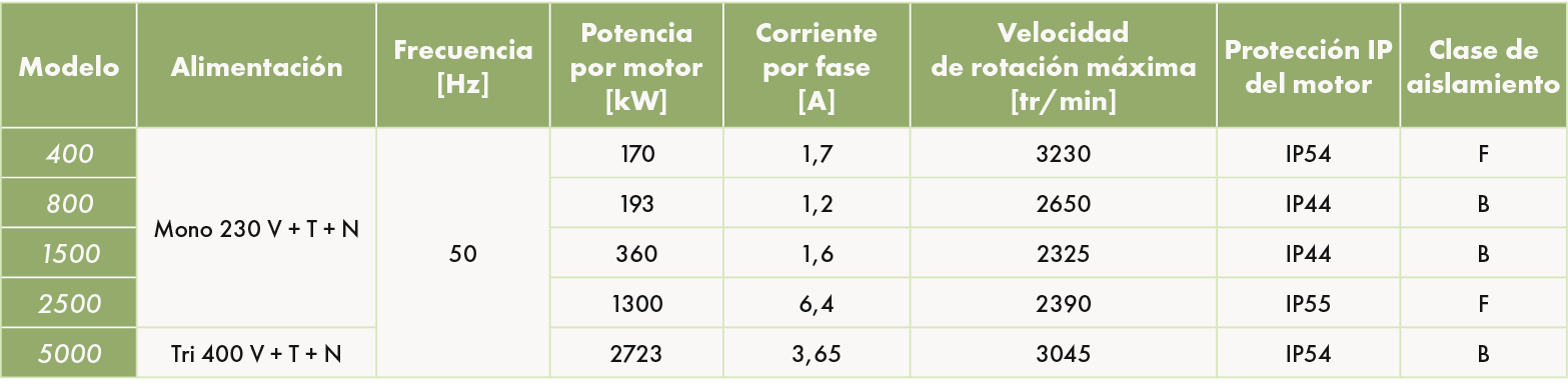 - Motor tipo EC de bajo consumo.