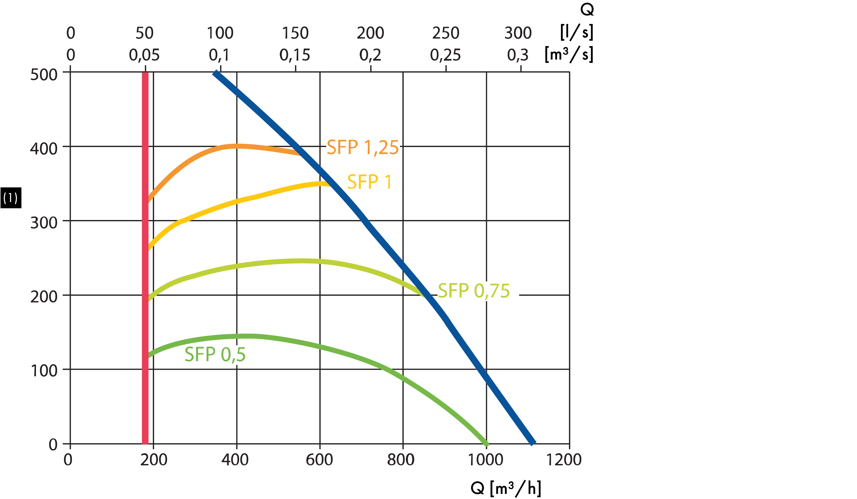 - Para filtros M5, con batería eléctrica. Los valores de SPF se muestran por ventilador.