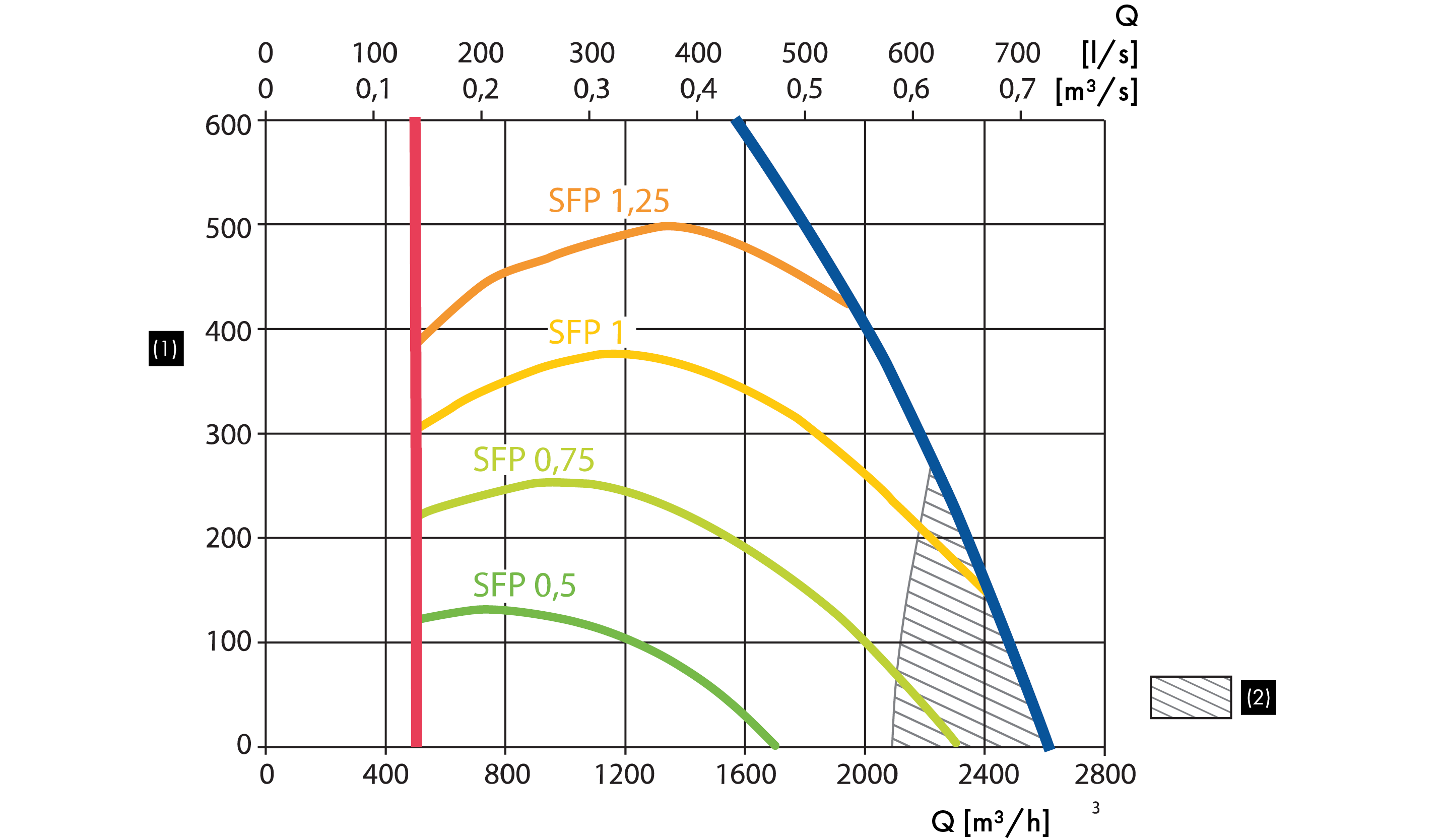 - 11 modelos de 200 a 7000 m³/h; para los modelos con caudales más bajos, consulte la hoja del producto PowerPlay® 90 H.