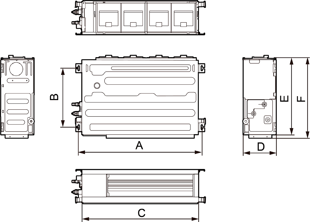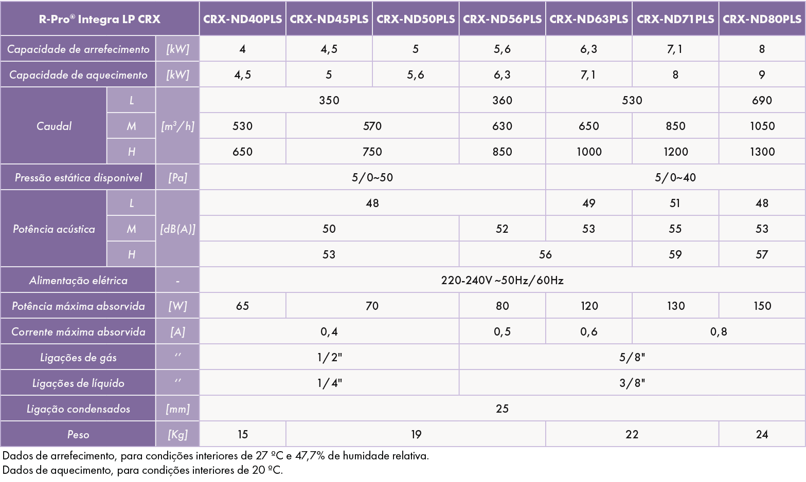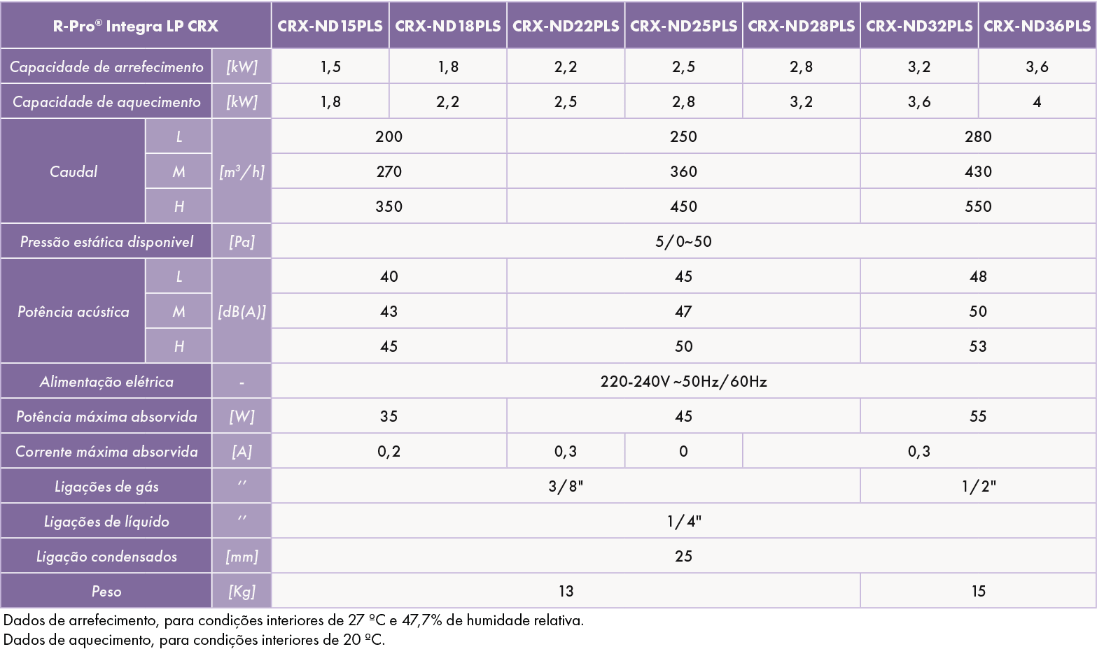 - Unidades interiores para sistemas de climatização do tipo VRF, para interligação a unidades exteriores CRX, para aquecimento e arrefecimento de espaços interiores.