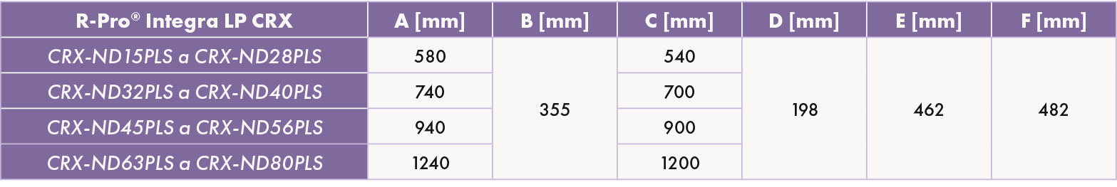 TABELAS DE SELEÇÃO PARA R-PRO® INTEGRA LP CRX