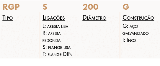 - Modelo RGP R: 80, 100, 125, 140, 150, 160, 180, 200, 225, 250, 300, 315, 350, 400, 450, 500 mm.