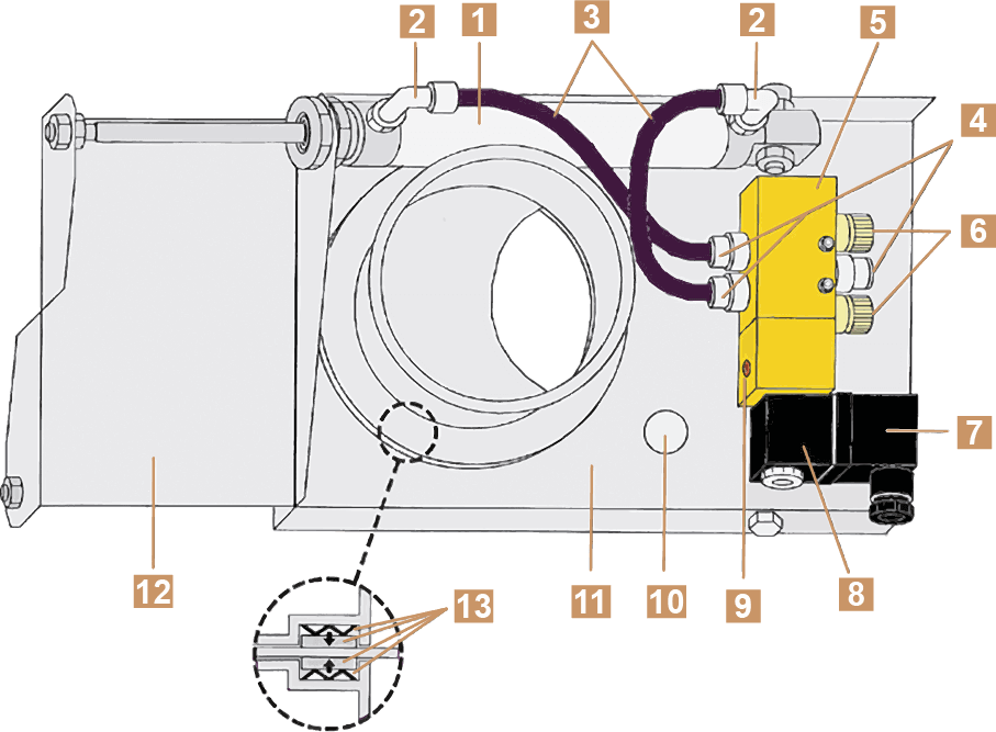 - La compuerta se acciona mediante uno o dos cilindros neumáticos, según el diámetro.