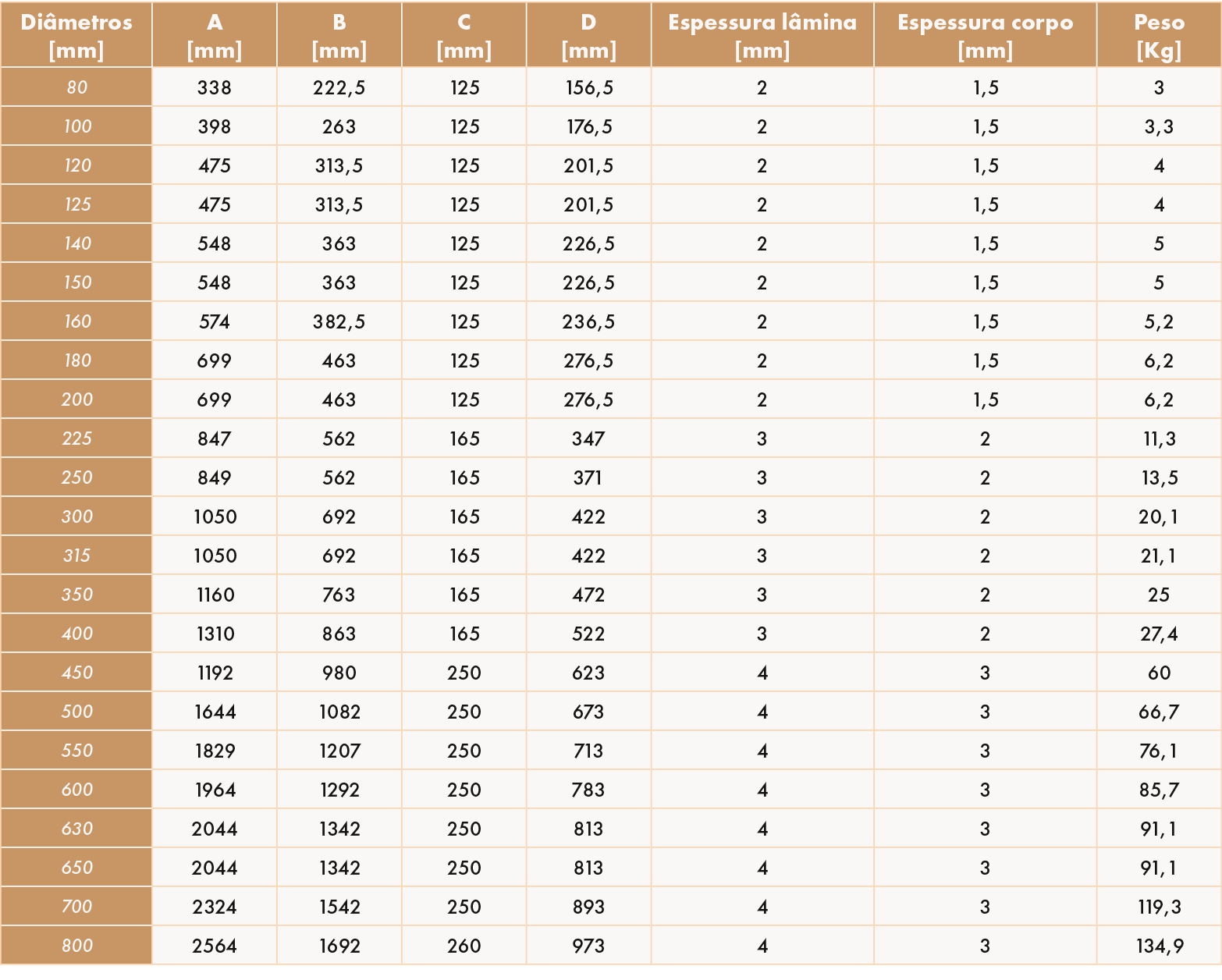 - Las dimensiones superiores que Ø 200 mm se suministran sólo con anillos de sellado.