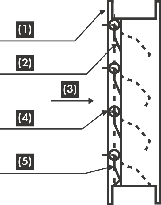 (4) Junta de plástico antifricción con límite de apertura de las aletas