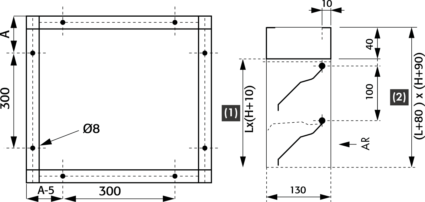 - Compuerta para conducto rectangular de 200 x 200 a 1200 x 2000 mm