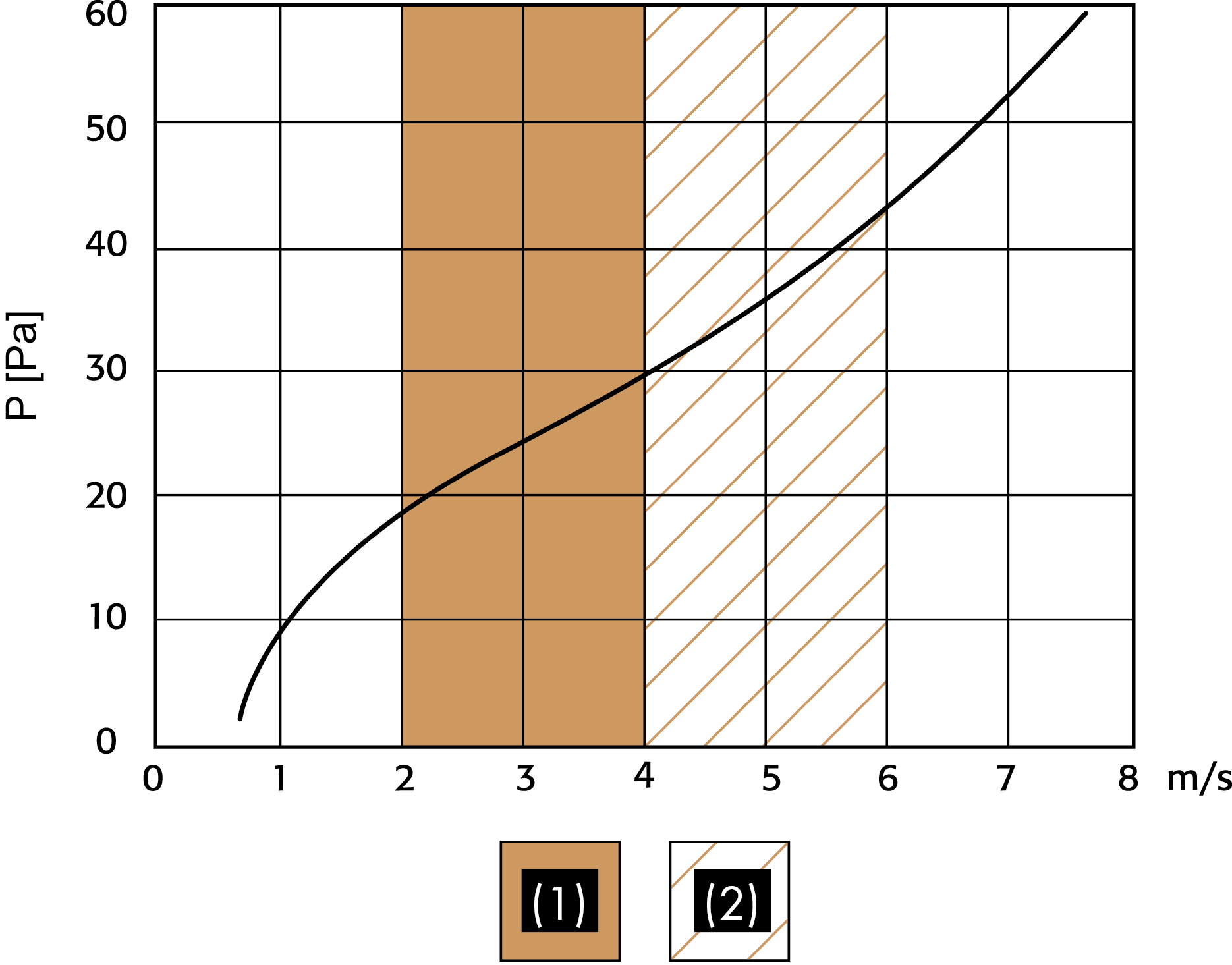 (1) Valores de selección optimizados: de 2 m/s a 4 m/s (a 4 m/s la compuerta está completamente abierta)