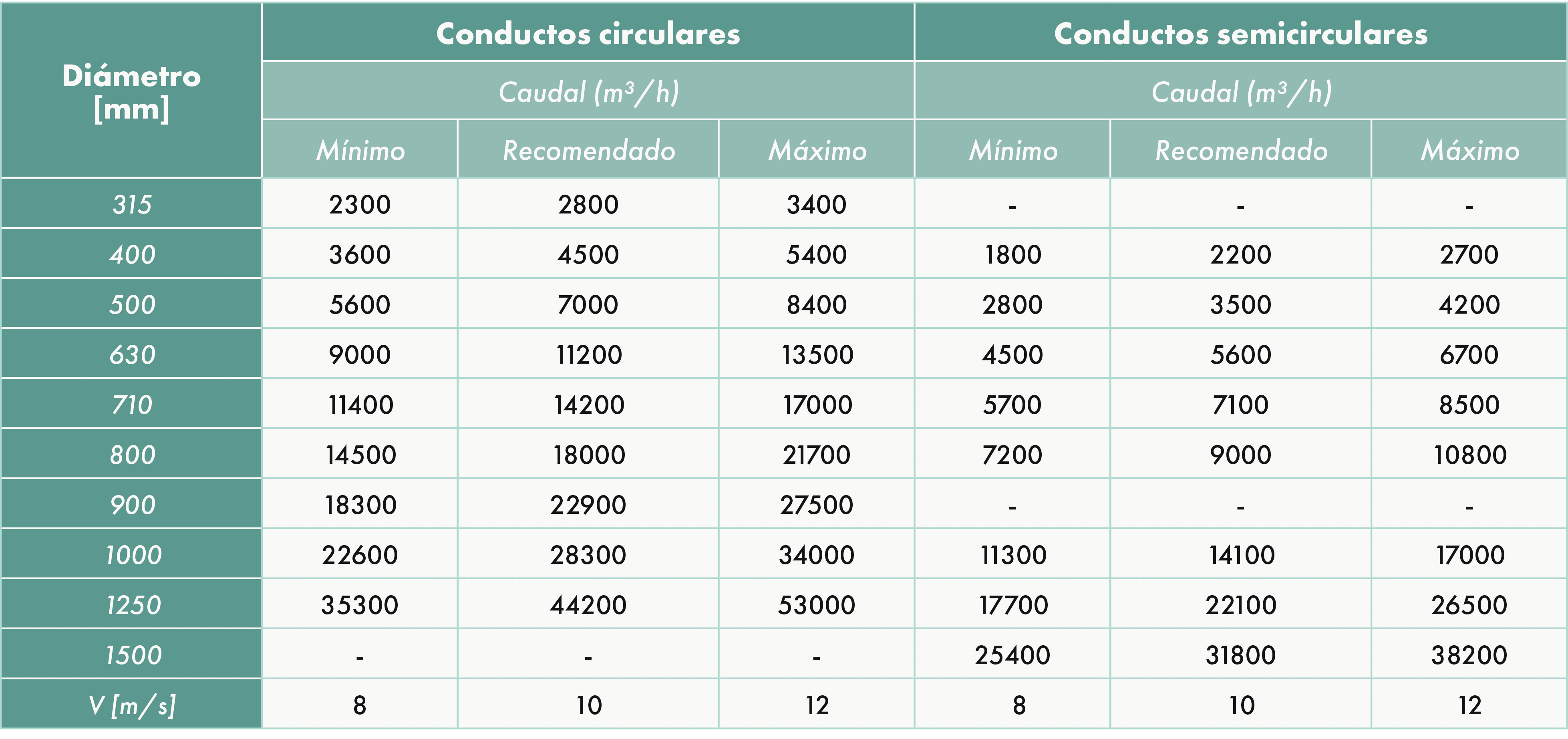- Caudales indicativos de 1700 m³/h a 53000 m³/h (tablas de selección).