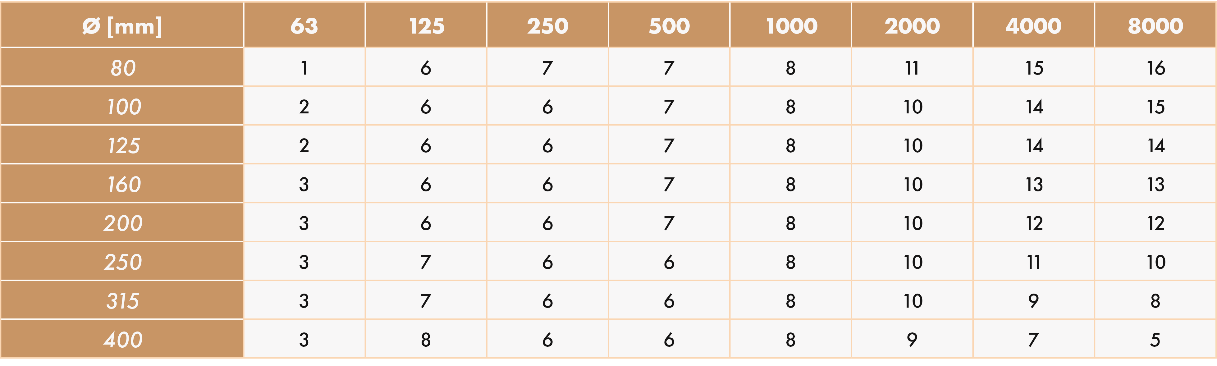 - Diámetros estándar: de 80 a 400 mm.