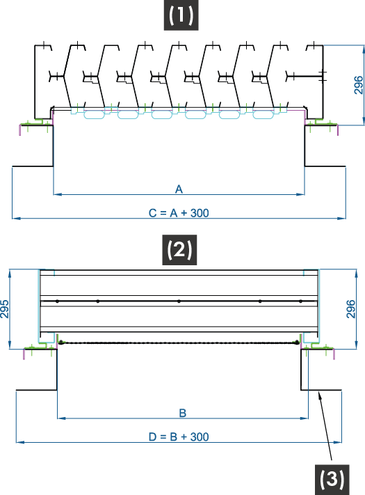 - ST - para instalação na cobertura com rebordo e base de fixação (não fornecida).