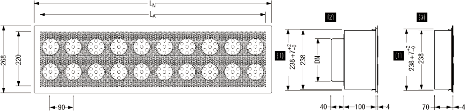 - A chapa perfurada e o aro de suporte são construídos em aço galvanizado, pintados a RAL 9010 em standard.