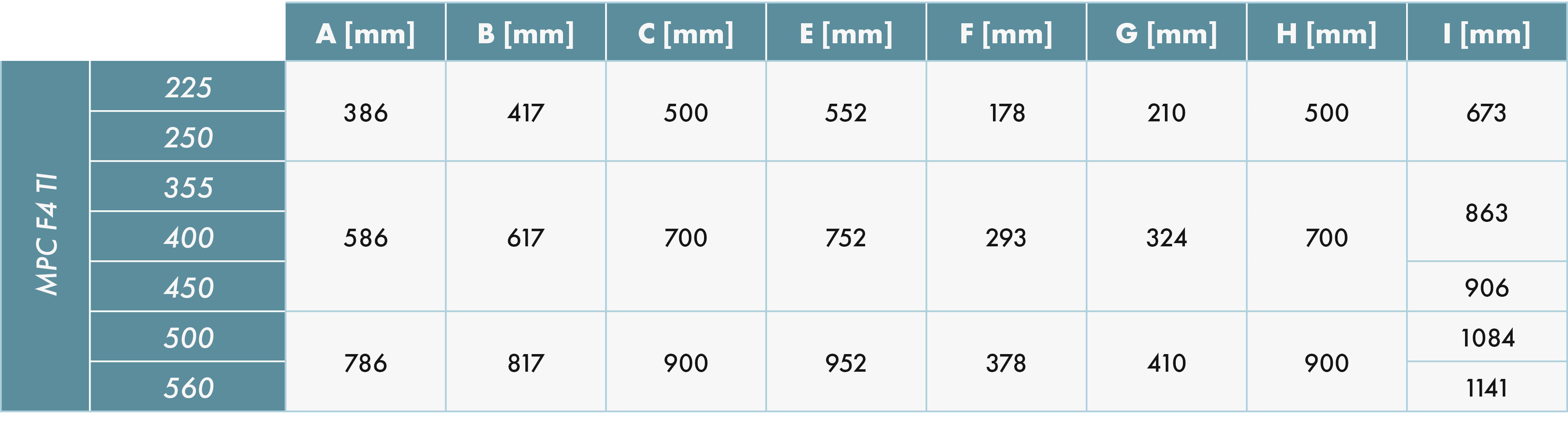 - MPC F4 TI: até 11500 m³/h.