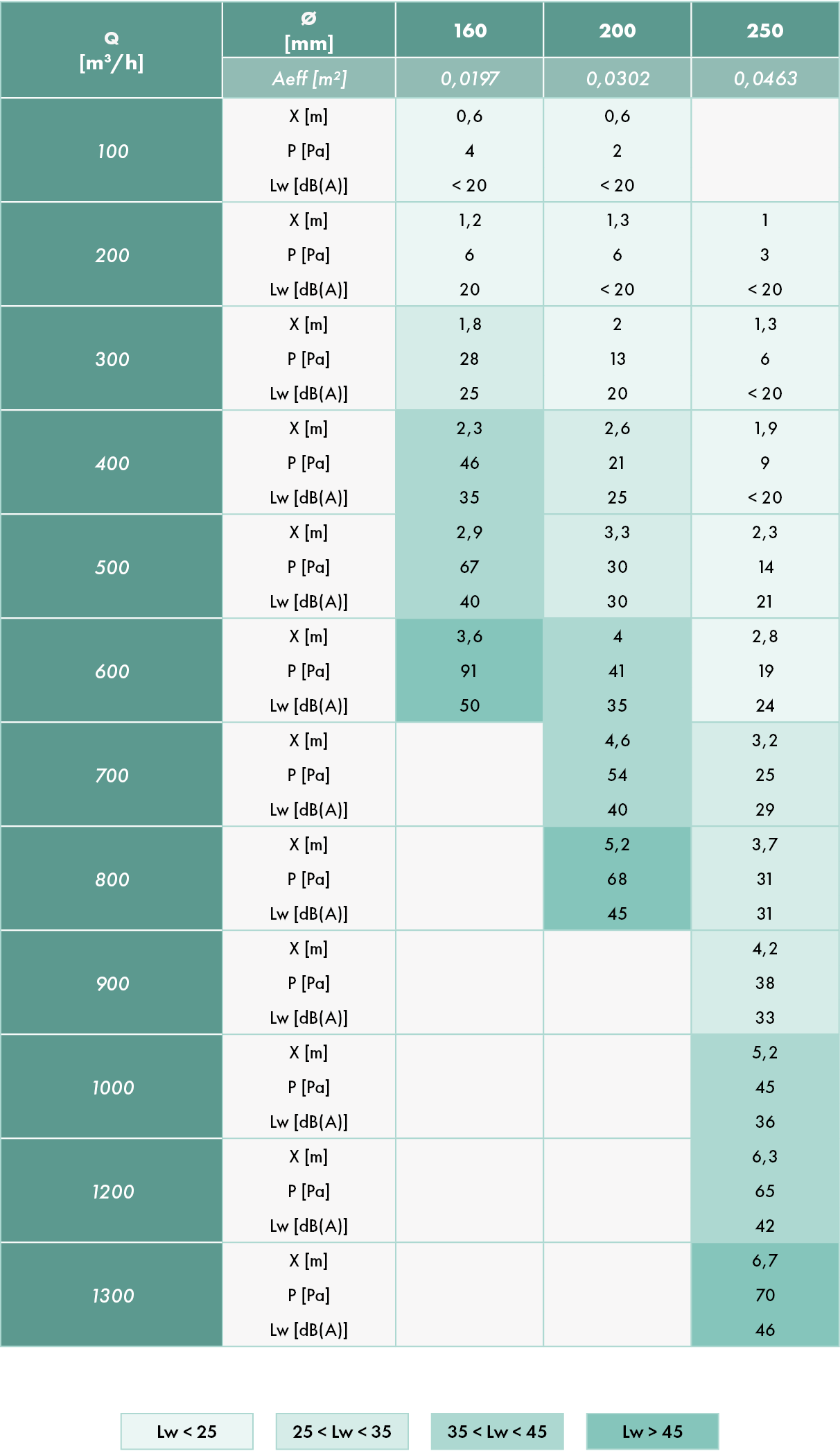 - Caudais indicativos de 100 até 1300 m³/h (tabela de seleção).