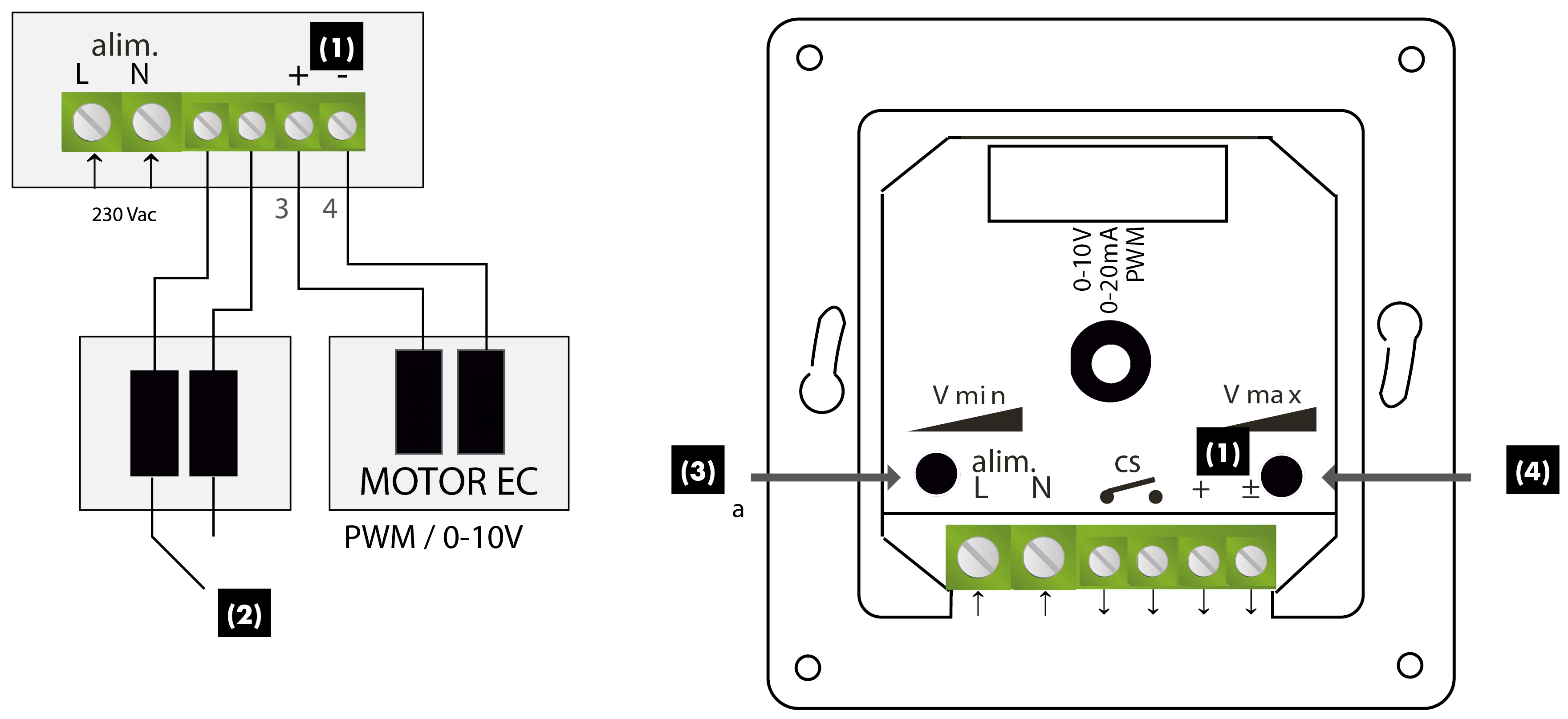 - Comando à distância potenciómetro IP 44/54 para ventilador equipado com motor EC.