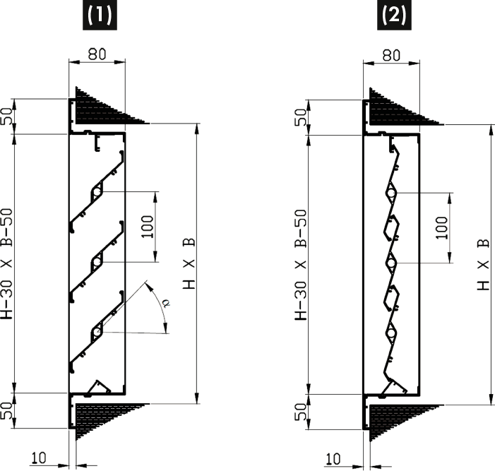 - Grelha exterior anti chuva para admissão ou extração de ar.