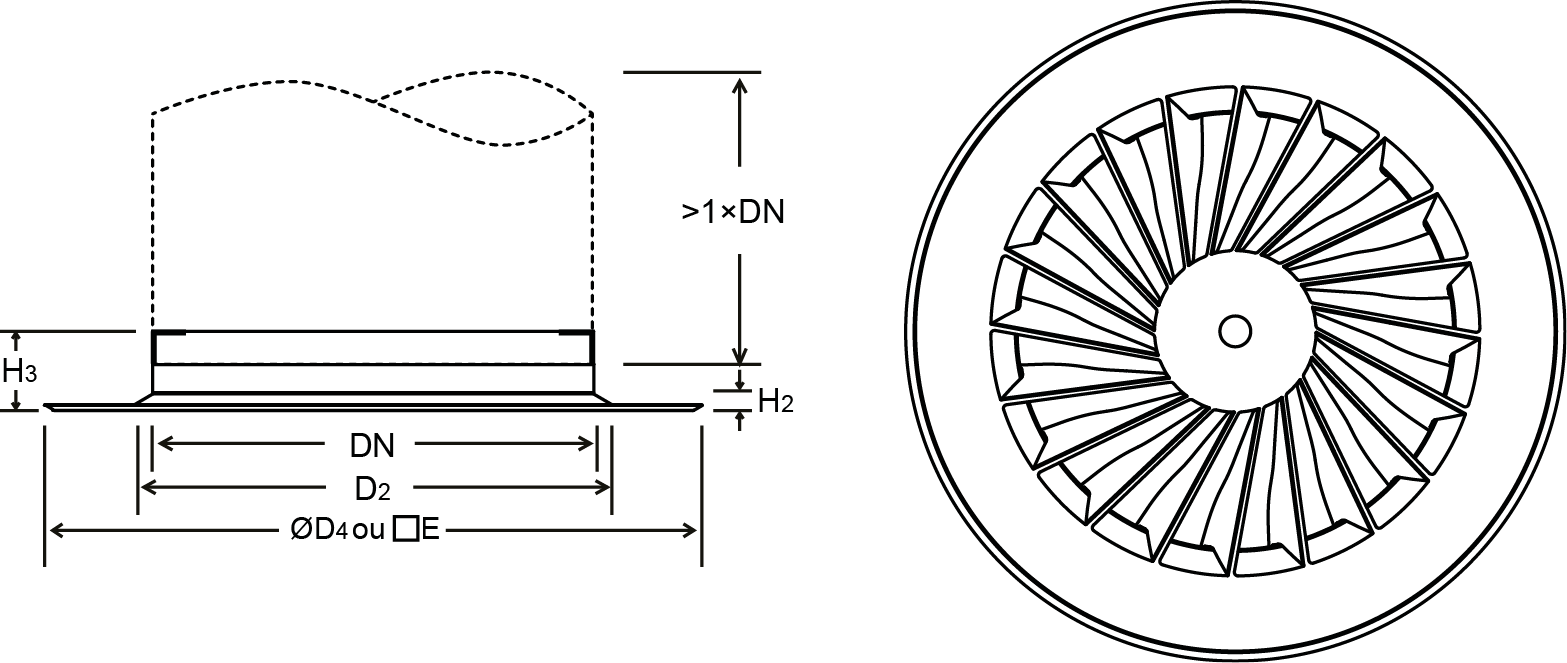 - Os difusores são concebidos para utilização onde existam grandes diferenças térmicas no setor industrial bem como para grandes alturas de instalação.