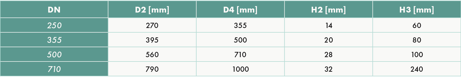 - 4 dimensões: DN250, DN355, DN500 e DN710.