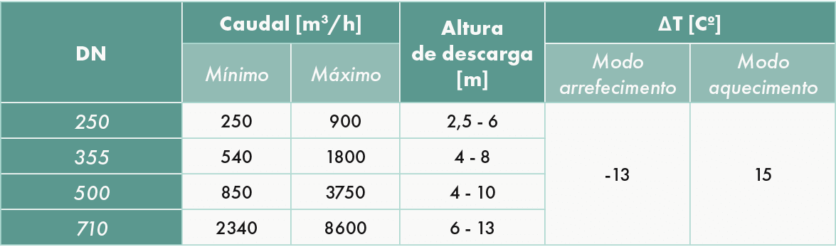 - ΔT: -13º C para arrefecimento e 15º C para aquecimento.