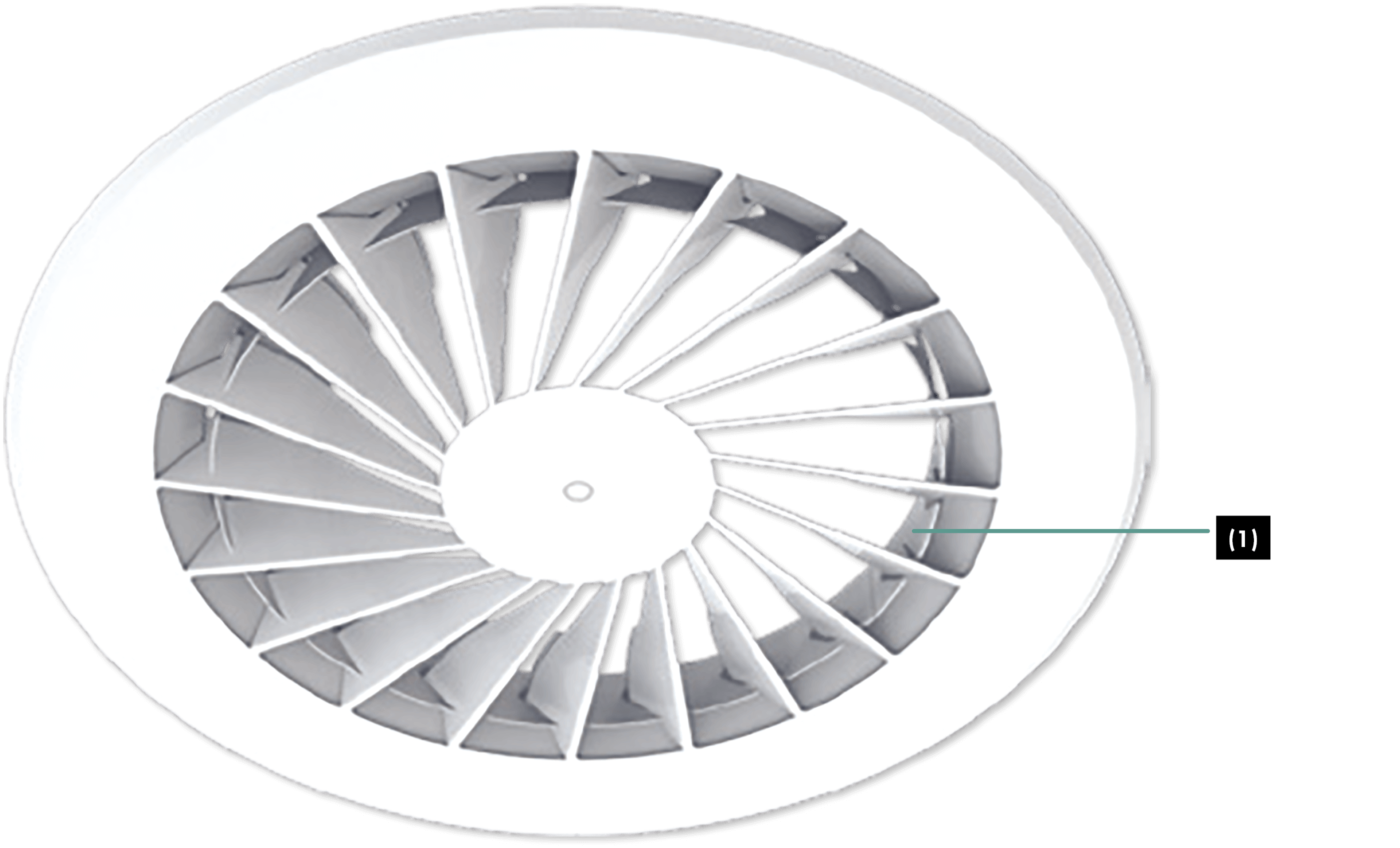 - Difusor radial com descarga ajustável, através de anel defletor instalado internamente.