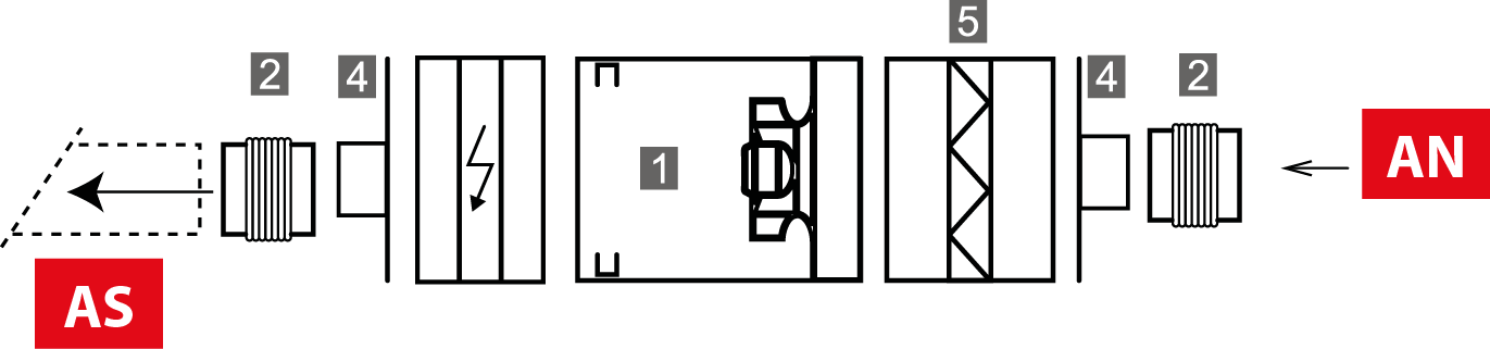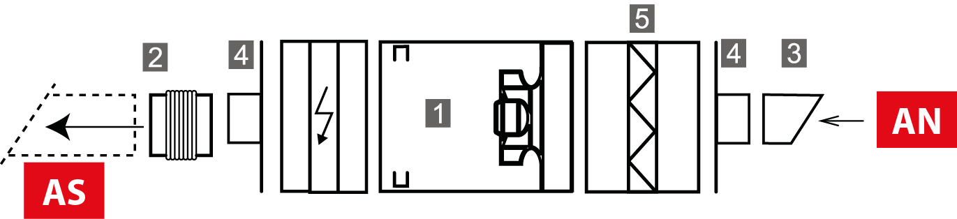 - Junta flexível circular na aspiração ou descarga a fixar diretamente nos painéis de aspiração e de descarga da caixa de ventilação.
