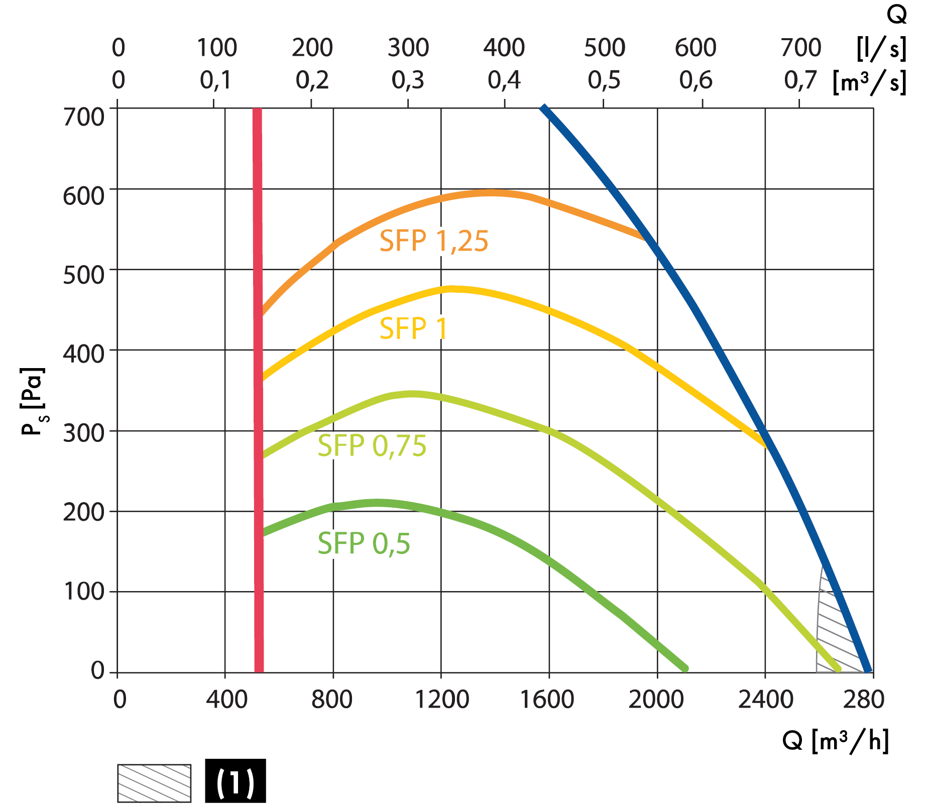 - Para filtros M5 com bateria elétrica e recuperador tipo L. Valores de SPF apresentados por ventilador.