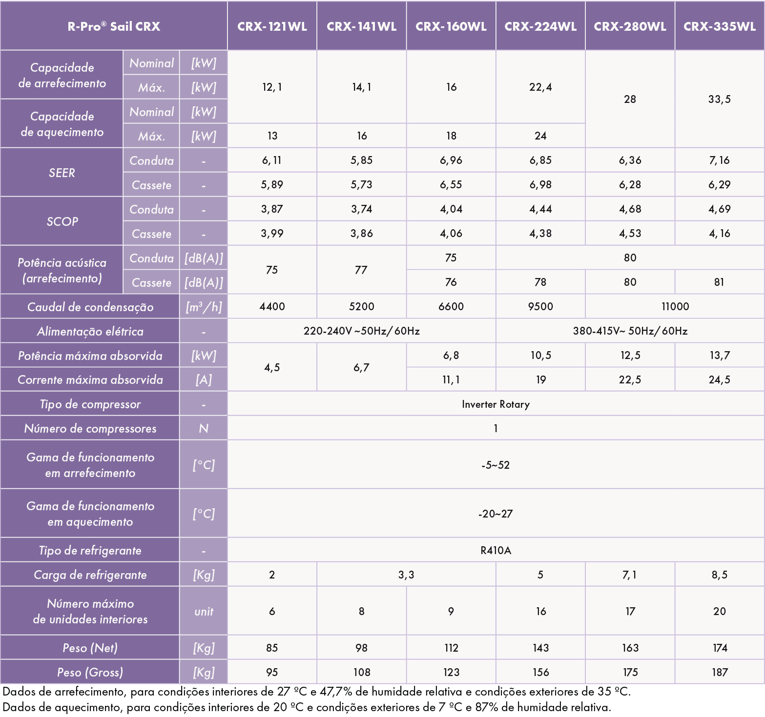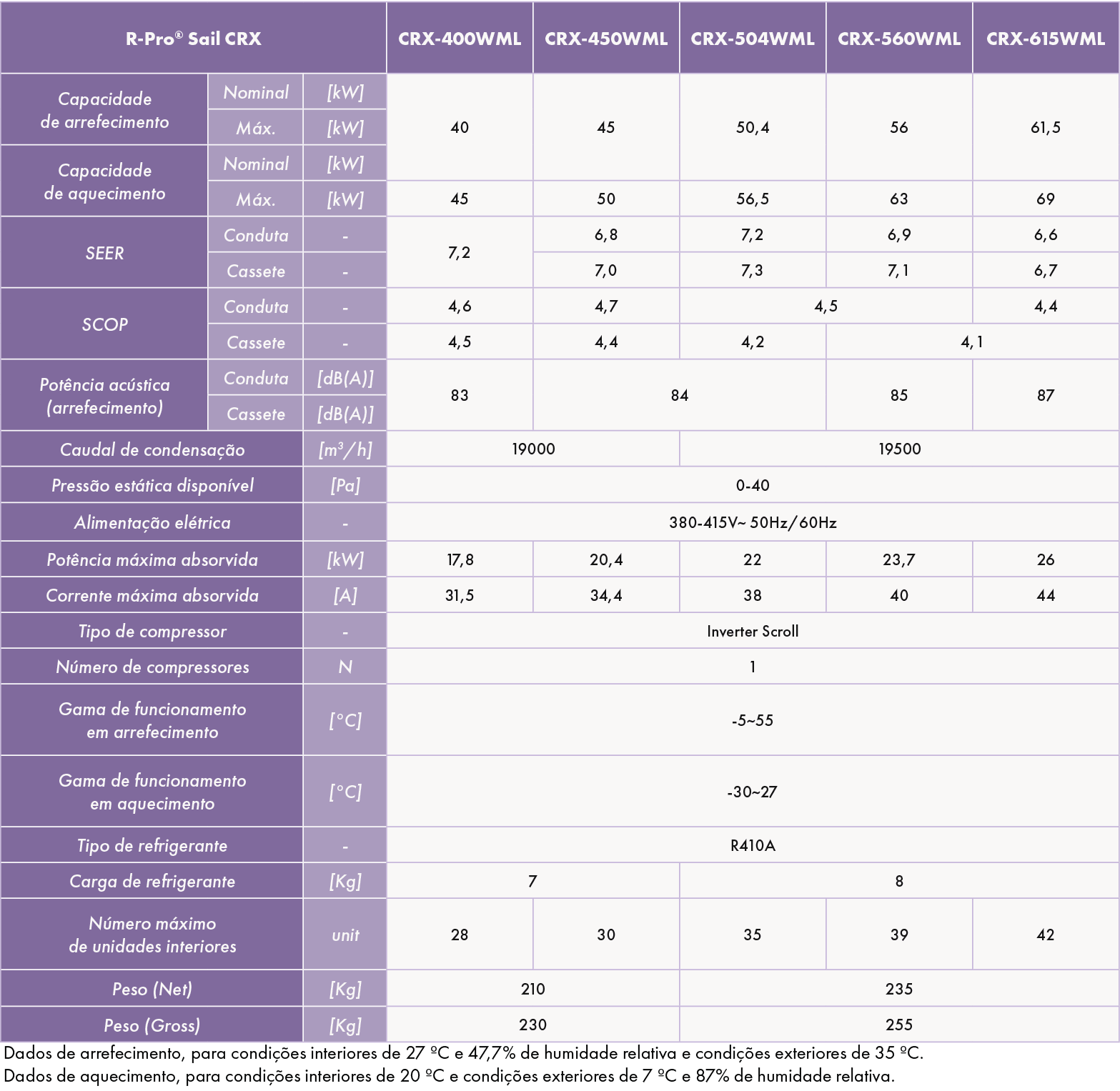 - Unidades exteriores para sistemas de climatização do tipo VRF, para interligação a unidades interiores CRX, para aquecimento e arrefecimento de espaços interiores.