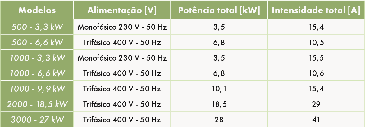 - Trifásicos: modelos 3000, 5000 e 8000.